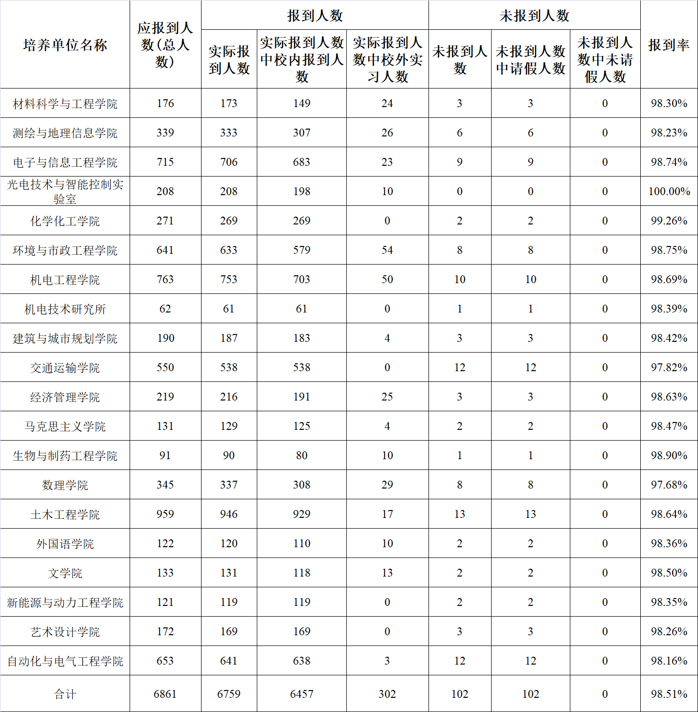 2023年“中秋节、国庆节”假期研究生返校报到情况通报(10月7日)