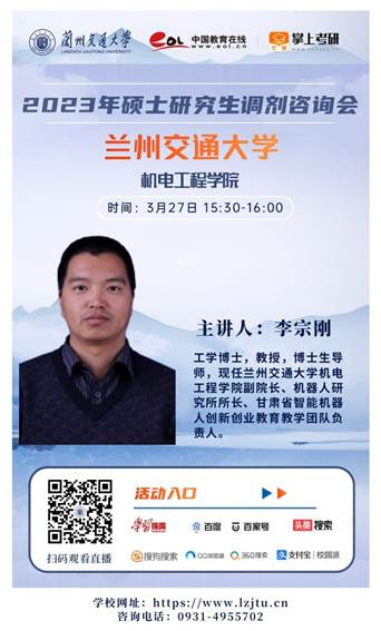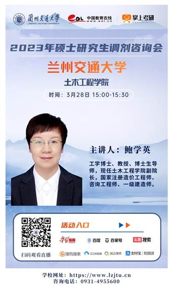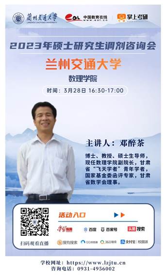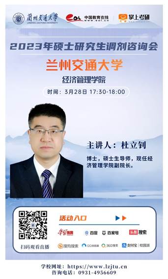 为帮助广大考生全面了解兰州交通大学,解答考研调剂面临的疑惑,中国教育在线·掌上考研联合兰州交通大学举办的2023年硕士研究生调剂咨询会即将开启!