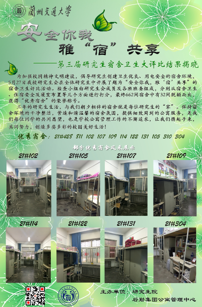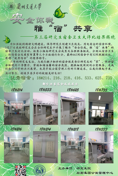 第三届研究生宿舍卫生评比活动“优秀宿舍”名单